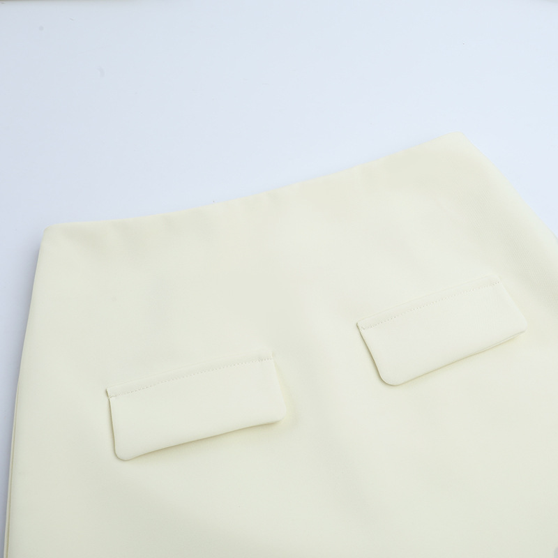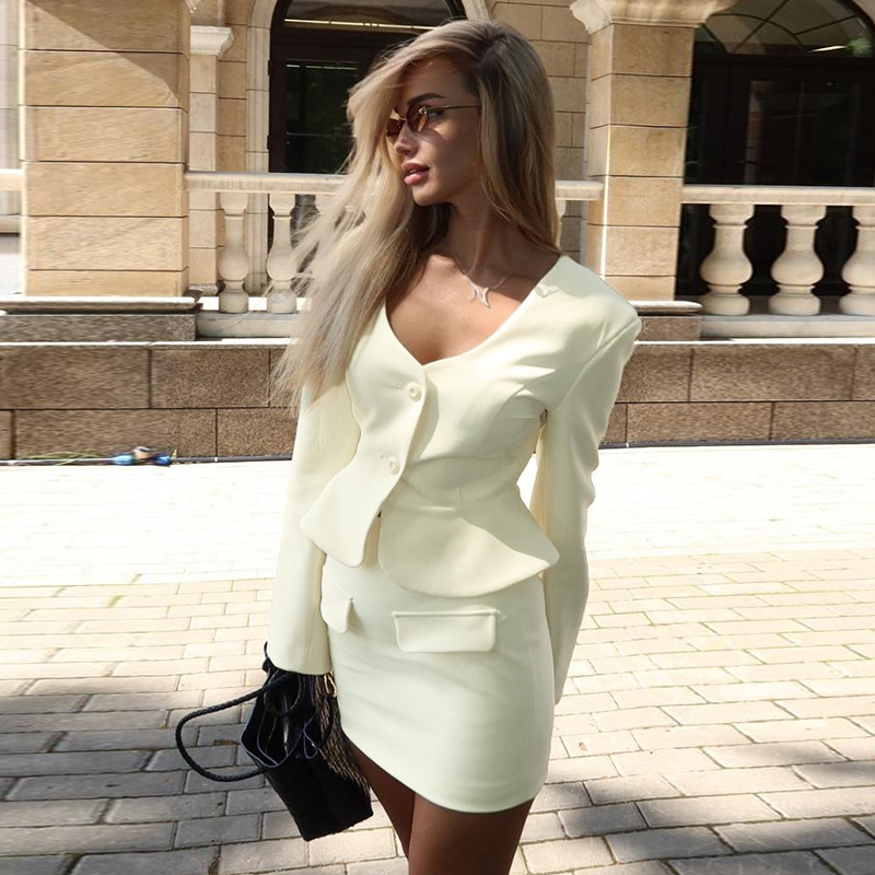 V-neck slim fit suit top and half skirt set